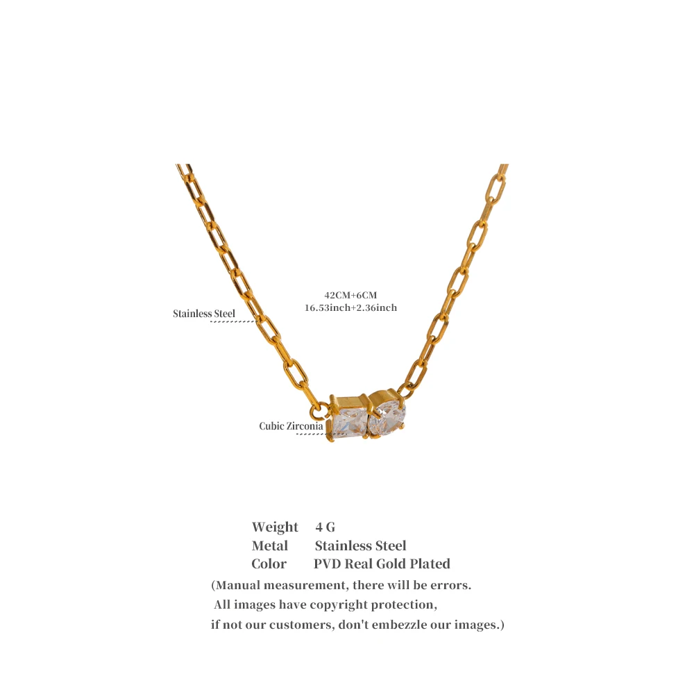 At the heart of the design sits a striking geometric pendant, beautifully set with premium cubic zirconia stones that deliver diamond-like sparkle. The pendant’s sleek structure and refined details make it a versatile statement piece perfect for layering or wearing on its own for a touch of effortless elegance.